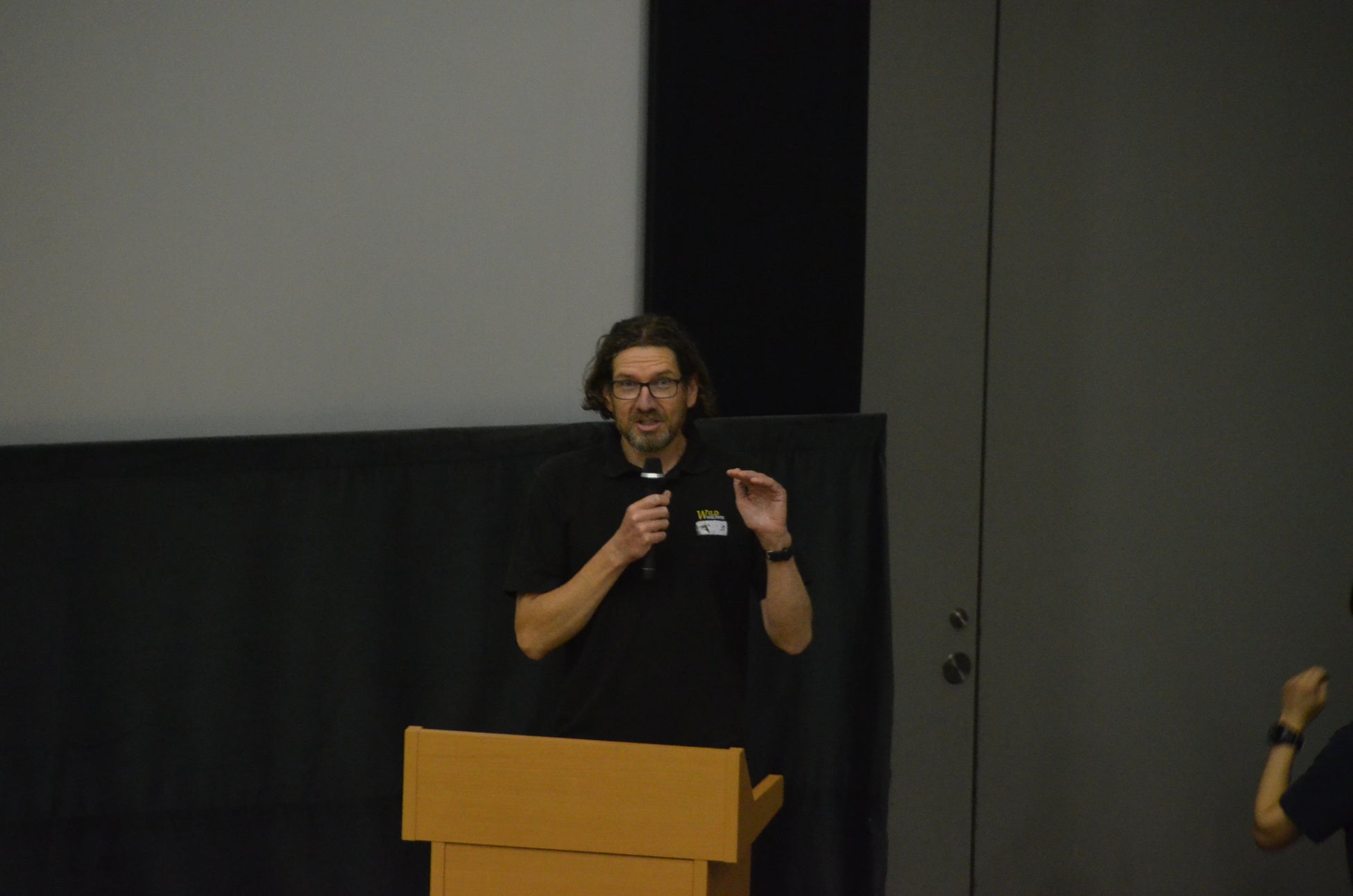 ワイルド・ウェルフェアの部長を務めるサイモン・マーシュさんは、動物福祉の向上を解説。「動物園、水族館の動物が、できるだけ自然な環境を与えられ、行動できるよう活動を進めています」と話し、参加者に「動物にとっていいことなのか、適正なのか、自問自答しながら動物に接してください」と呼びかけました。