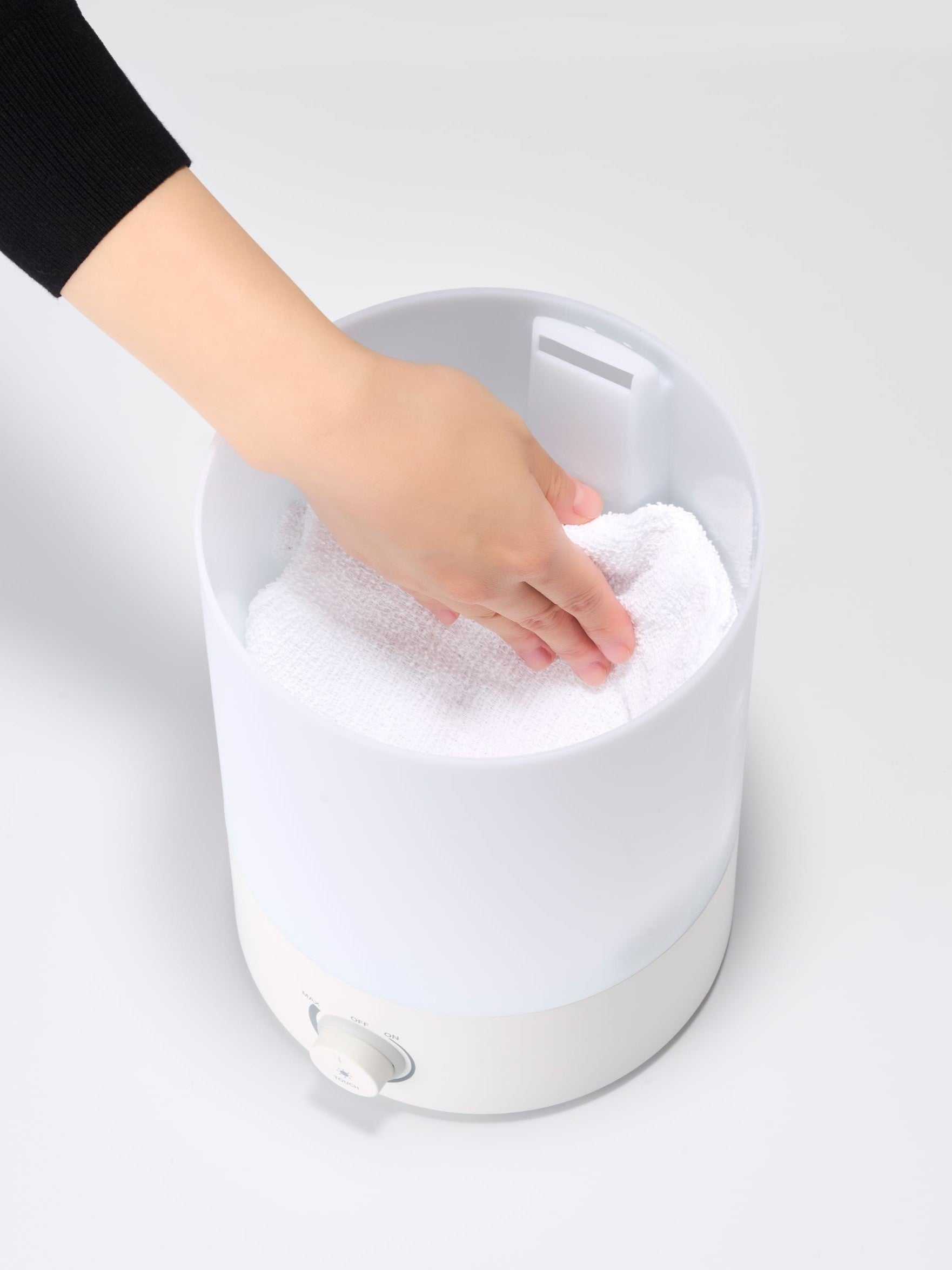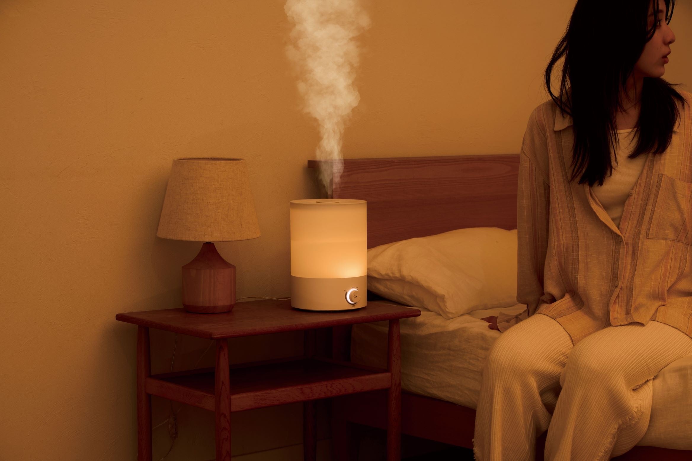 ダイヤル式でミスト量を無段階に調整できます。シーンやお部屋の広さに合わせて、細かく加湿量をコントロールできるため、ライフスタイルに合わせて自在にお使いいただけます。