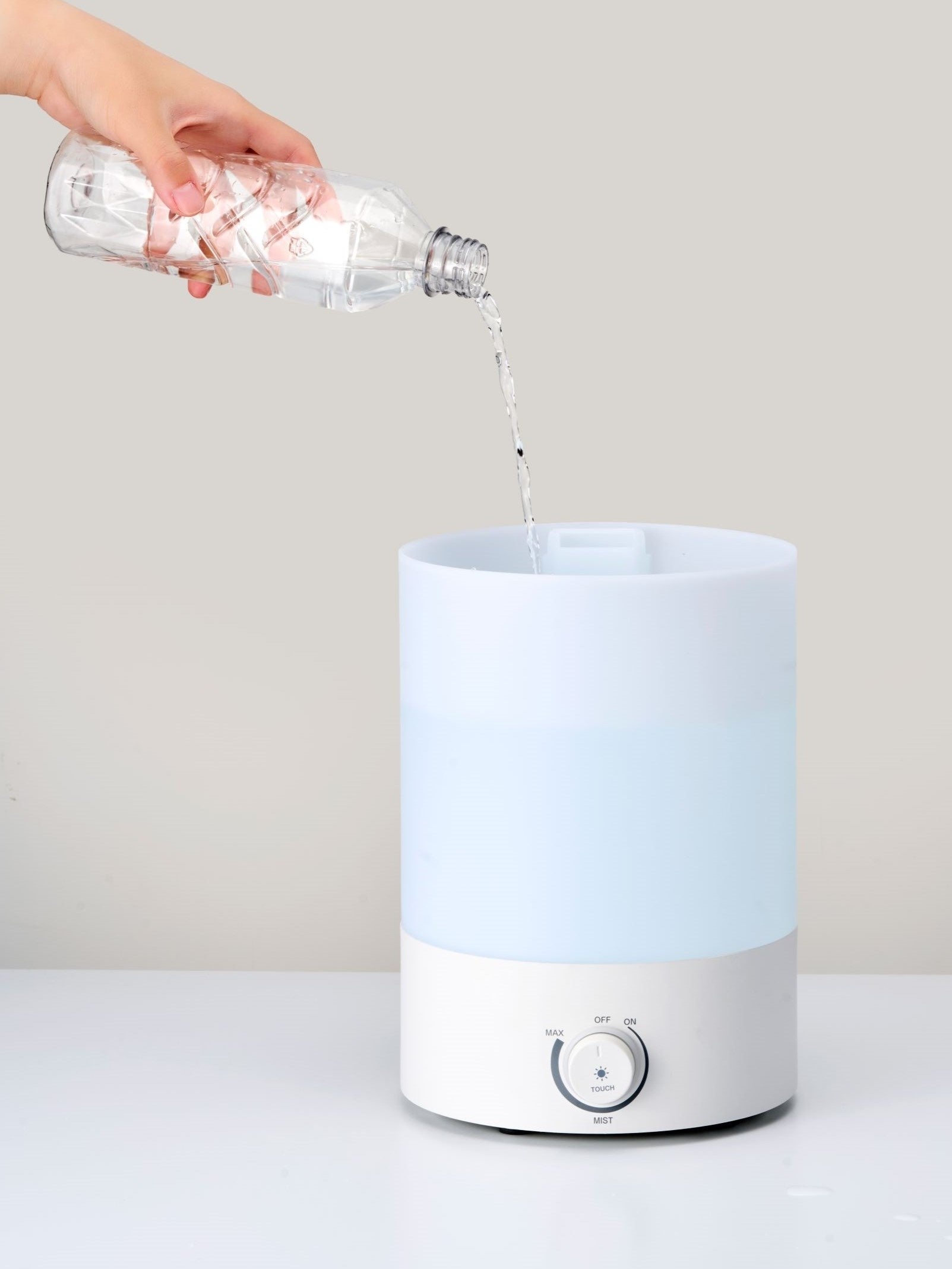 本製品の水タンクは、内部の凹凸が少ない設計となっており、隅々まで手軽にお手入れいただけます。超音波式加湿器で課題とされる内部のぬめりや汚れも凹凸が少ないことで落としやすく、清潔な状態を保ちやすい構造です。毎日のお手入れを簡単に行えることで、加湿器をより安心してご使用いただけます。