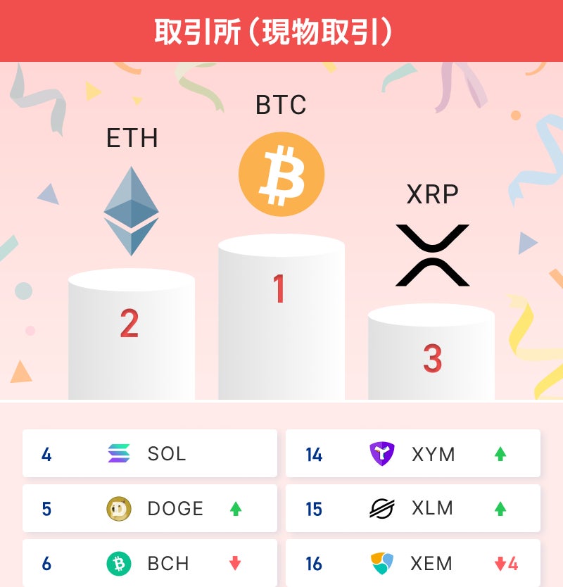 2024年9月の暗号資産取引ランキングは、「販売所」では1位イーサリアム(ETH)、2位ビットコイン(BTC)、3位リップル(XRP)、「取引所(現物取引)」では1位ビットコイン(BTC)、2位イーサリアム(ETH)、3位リップル(XRP)となりました。