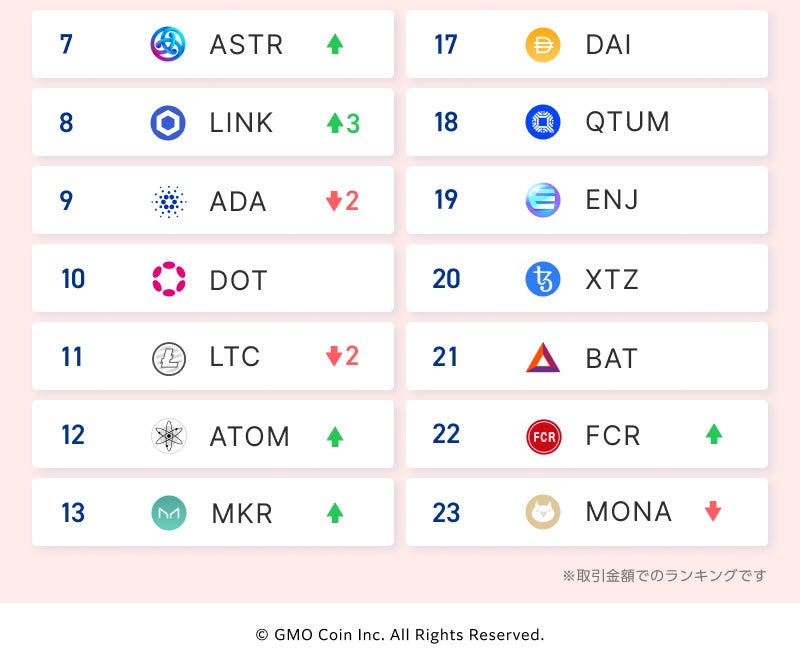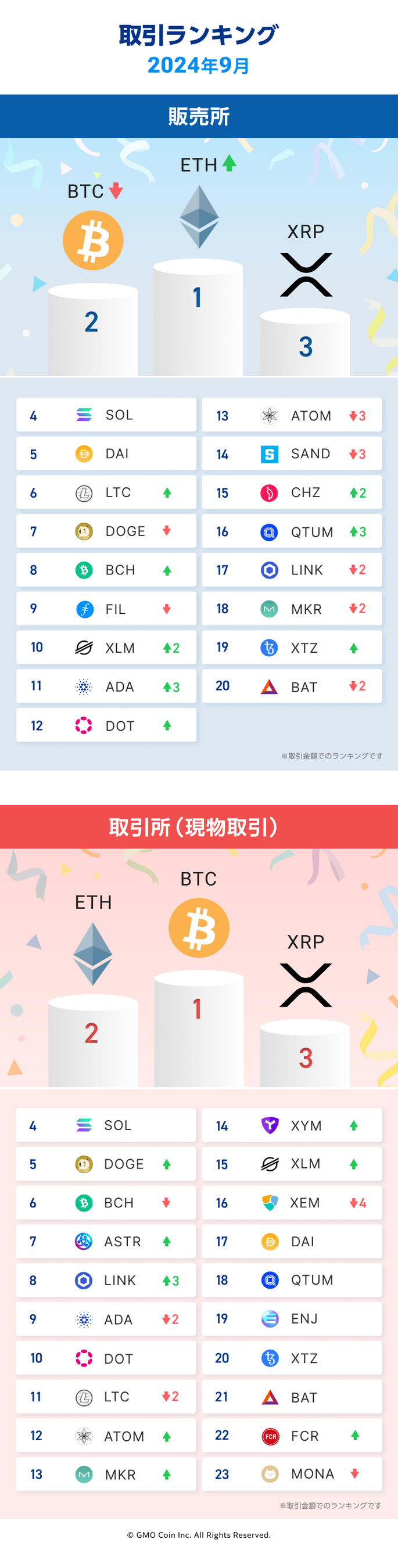 GMOコインの「販売所」および「取引所(現物取引)」における2024年9月の取引ランキングをご紹介します。
