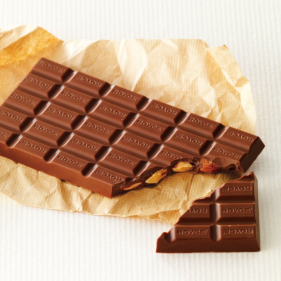 カリフォルニア産の香ばしいアーモンドをまろやかなミルクチョコレートに丸ごと散りばめた、食べ応えある一枚です。