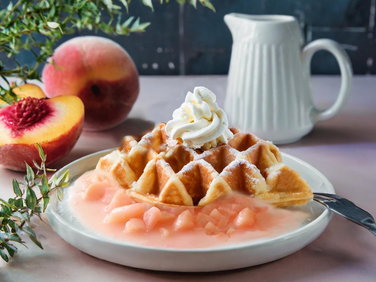 【無限スイーツで充実の食べ放題‼】ニラックスブッフェにてサクモチ食感のハイブリッドスイーツ『クロッフル』コーナーにたっぷり果実の『白桃ソース』が登場!セルフメイクで焼きたてをご堪能ください!