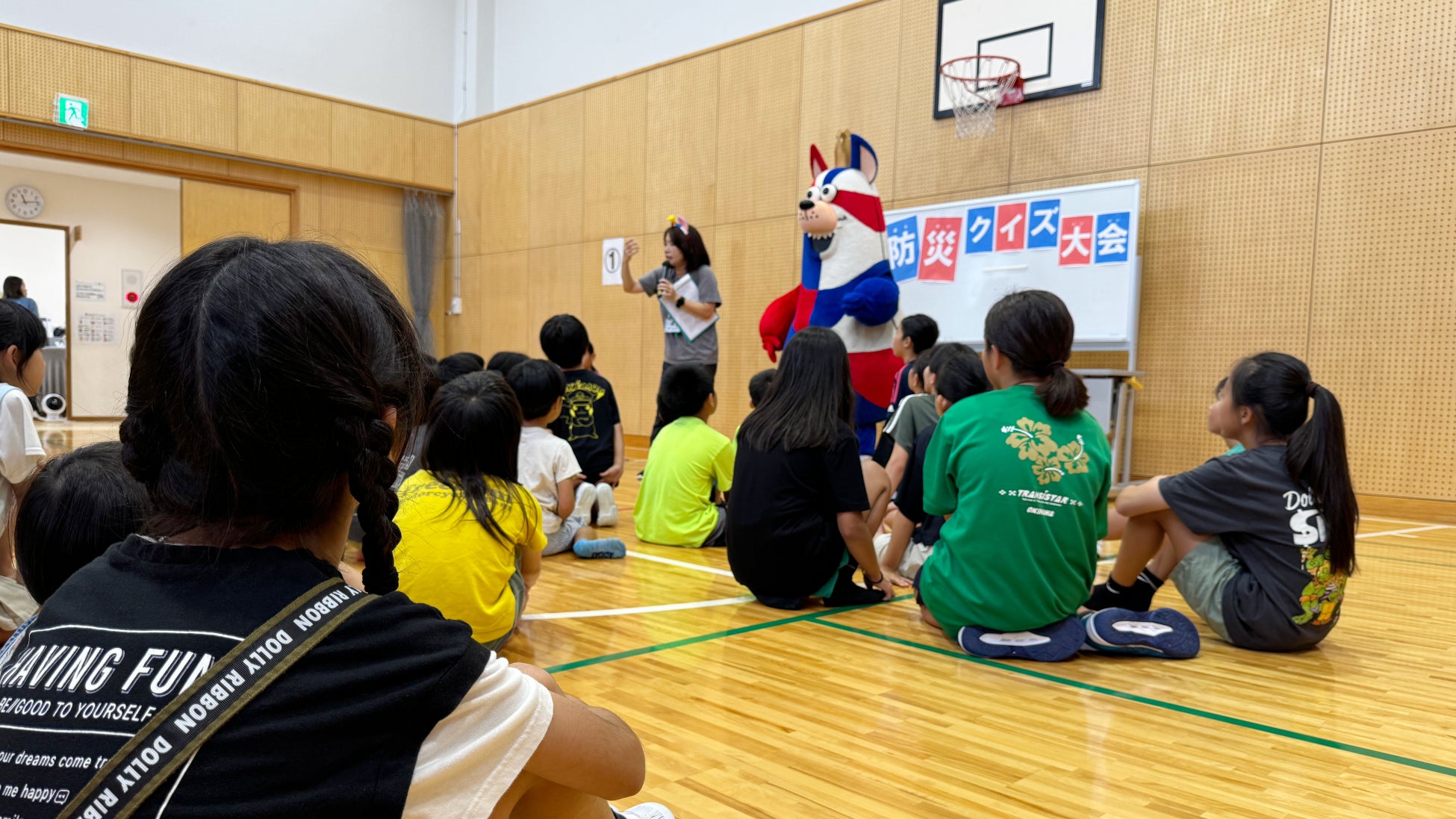 7月25日(木)にうるま市「きゃん児童館」にて行われた「楽しく学ぼう♪防災クイズ大会!」に、ゴーディーが参加いたしました。このイベントは、「令和6年能登半島地震」をきっかけに、子どもたちに津波や地震など自然災害について正しい知識を持ってもらうことを目的に、きゃん児童館の職員の方たちが取り組んでいます。
