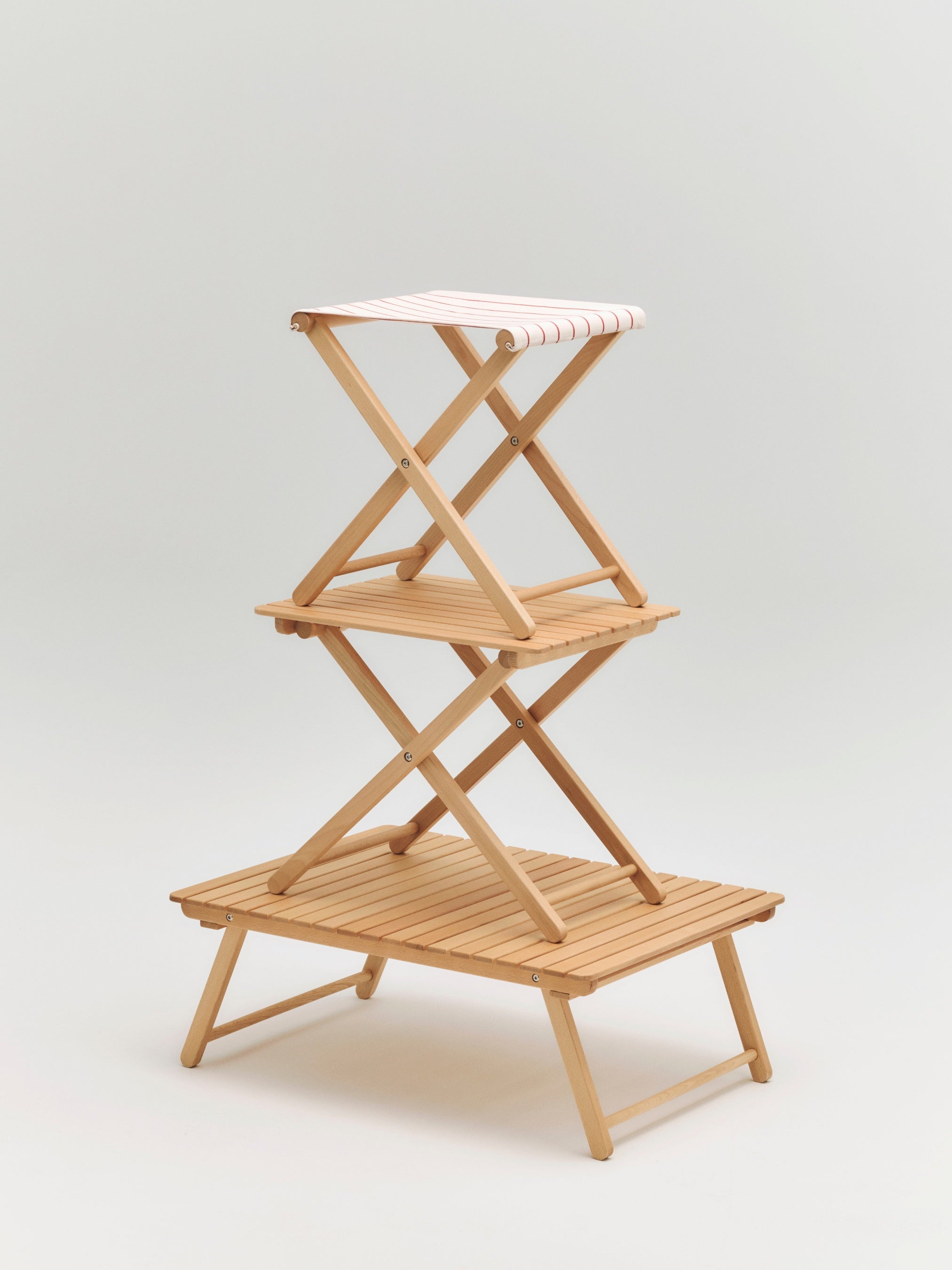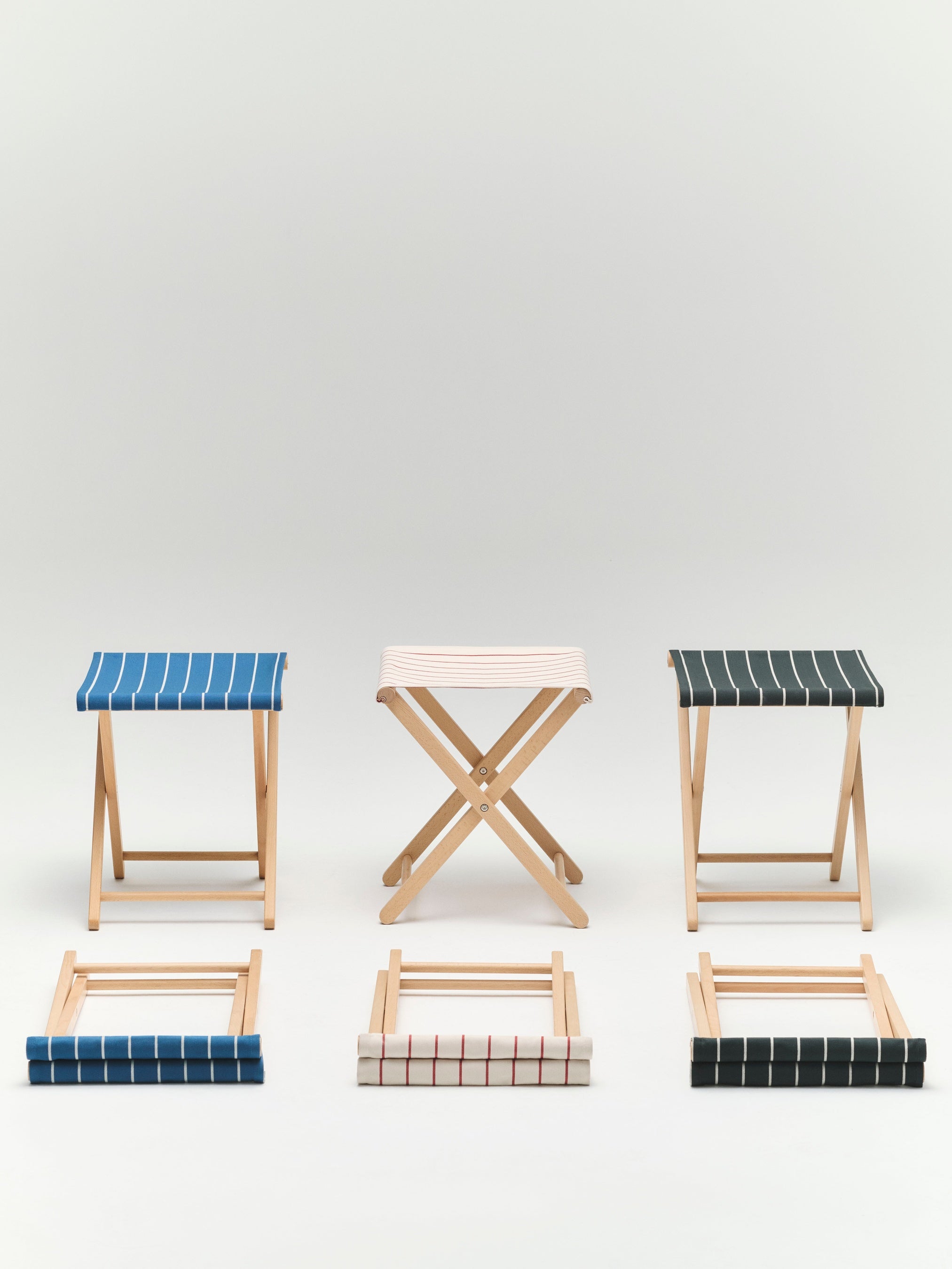 屋外のあらゆるシーンに快適さと洗練されたスタイルを添えるポータブル・スツール。軽量なビーチ材のフレームと、ストライプ柄の再生ポリエステル素材の座面を組み合わせたミニマルなデザイン。収納や移動に便利な専用のファブリックバッグも付属。サブチェアとして、あるいはちょっとした休息用のスツールとして、アウトドアライフをより軽やかに彩ります。