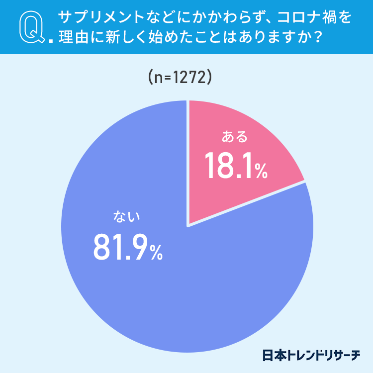 最後に、サプリメントだけではなく「コロナ禍を理由に新しく始めたこと」があるか聞きました。