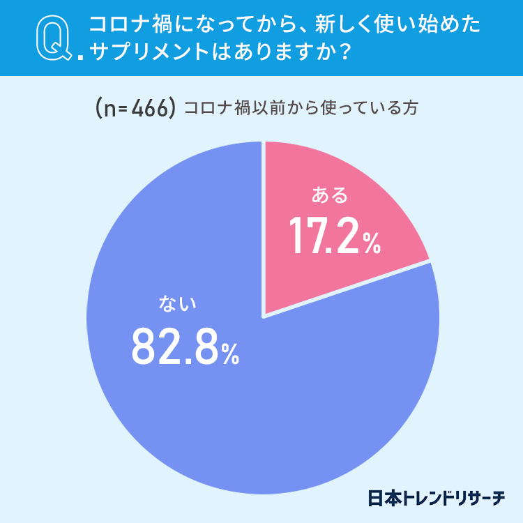17.2%の方が、コロナ禍になってから新しく使い始めたサプリメントが「ある」と回答しました。