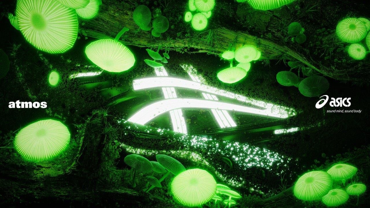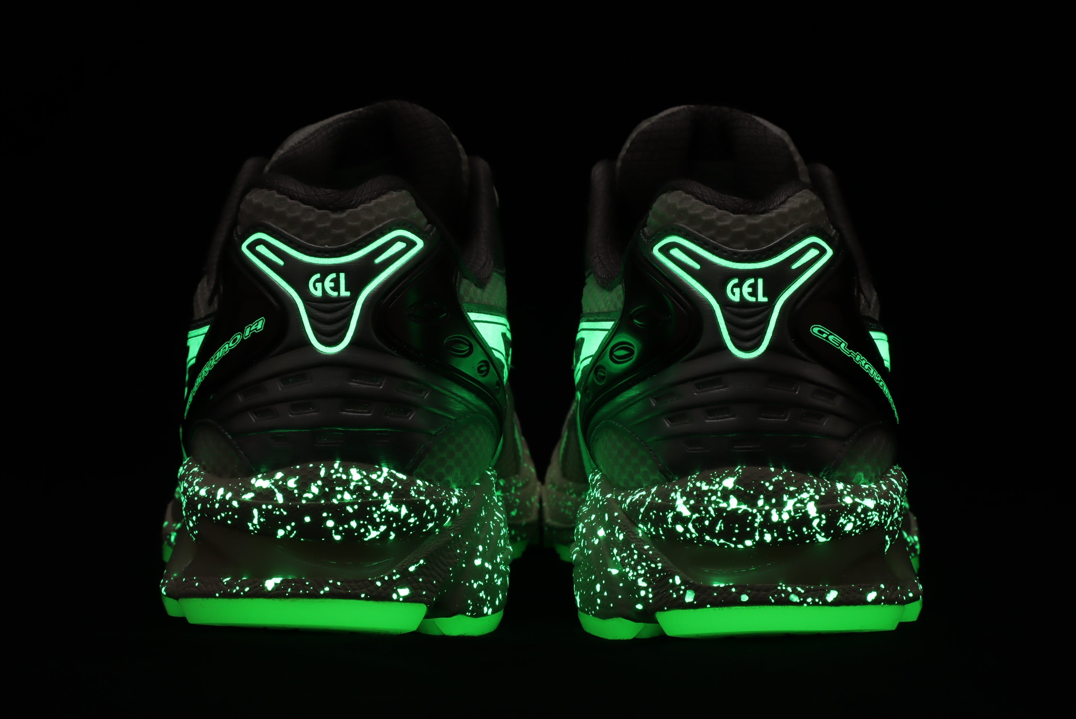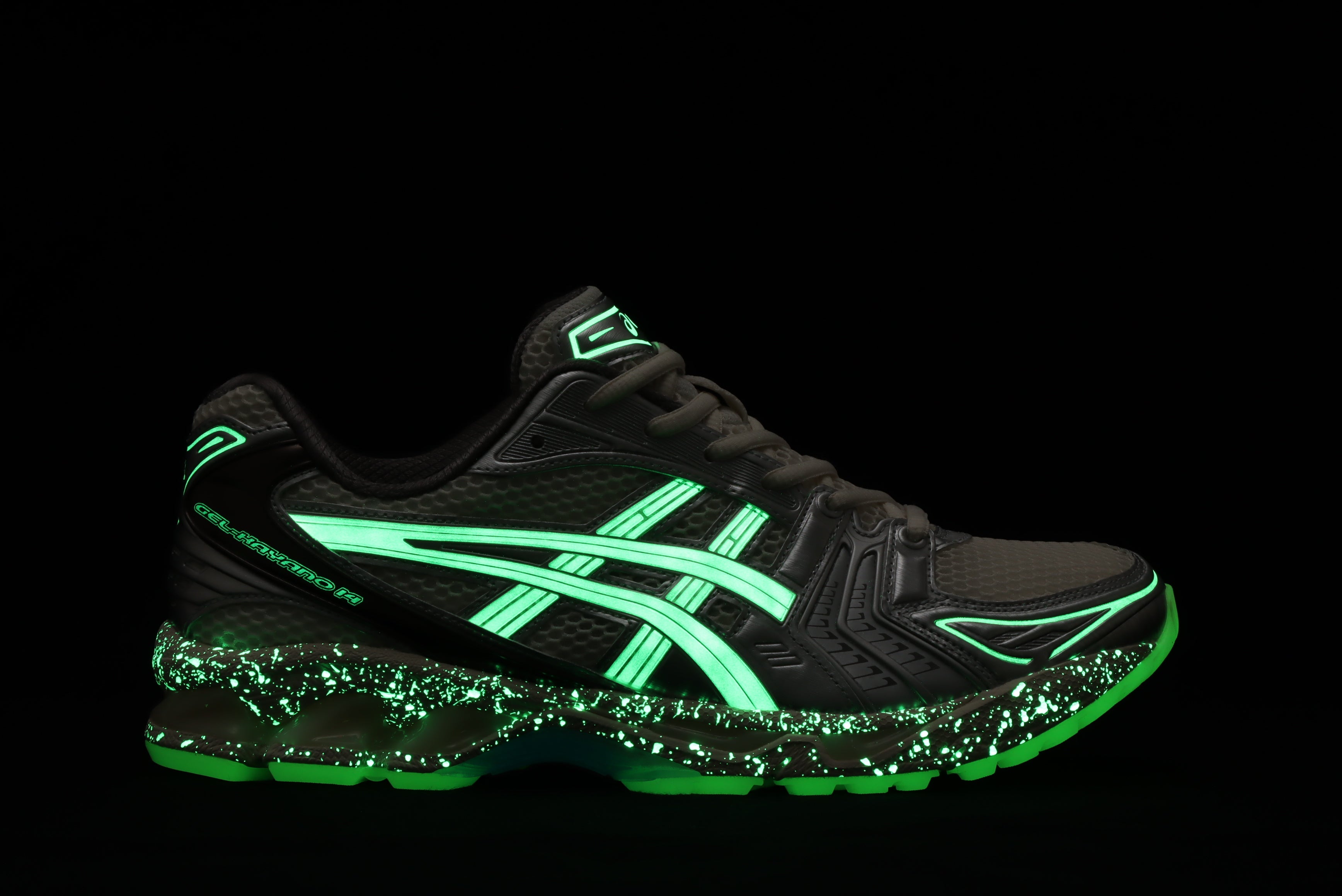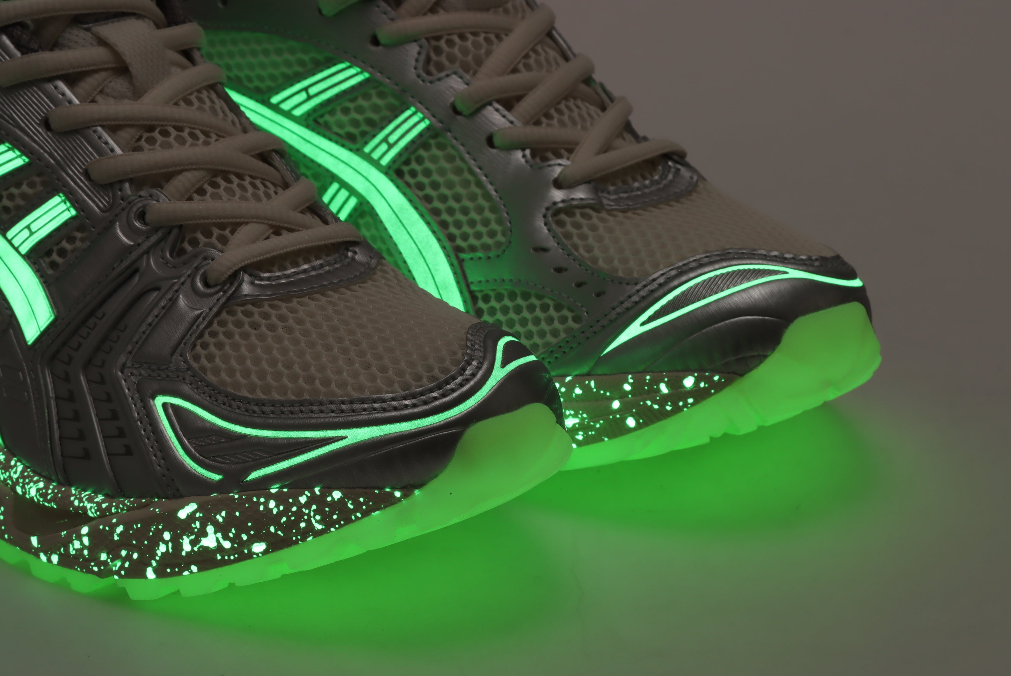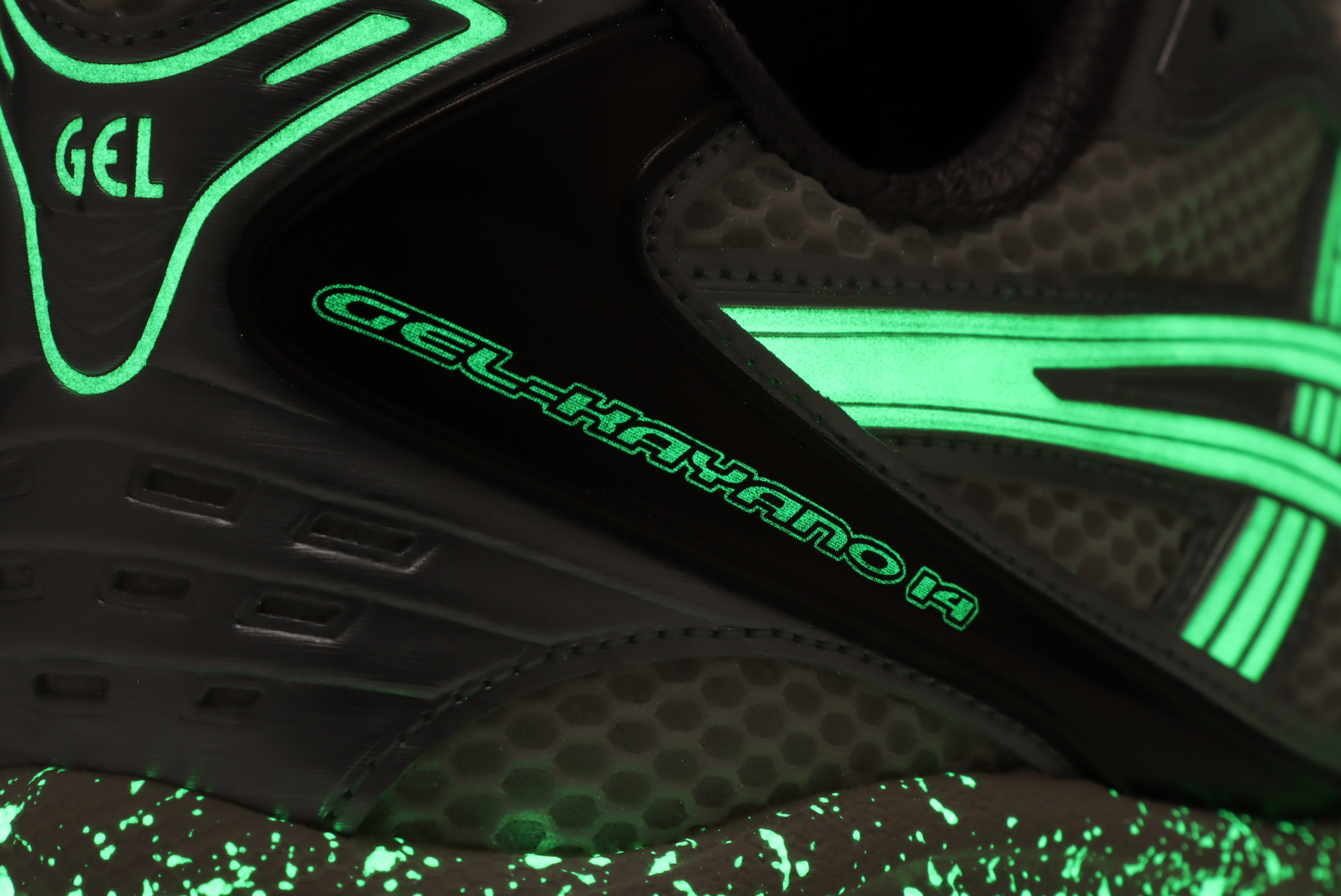 そんなASICS SportStyleのトレンドを牽引しているモデルを、atmosらしくコンセプチュアルに展開したGEL-KAYANO 14は実際に日本にも生息する最も強く光るとされる発光キノコ、“夜光茸(Yakoutake)”をテーマに据え、GLOW IN THE DARKのデザインでアレンジ。