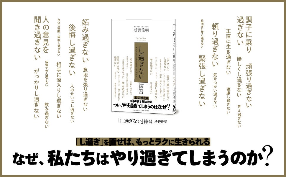 ビジネス書や実用書を中心に出版する株式会社クロスメディア・パブリッシング(本社:東京都渋谷区、代表取締役社長:小早川幸一郎)は、2025年3月28日に書籍『「し過ぎない」練習』を刊行します。本書は、曹洞宗の僧侶であり数多くのベストセラーを著書に持つ枡野俊明さんが、現代人が陥りがちな「し過ぎる」習慣を見直し、心にゆとりを持って生きる方法を解説した一冊です。心配し過ぎる、怒り過ぎる、気をつかい過ぎる……。そんな「し過ぎ」の状態から抜け出し、自分にとってちょうどいいバランスを取り戻すためのヒントを「禅の教え」をベースに具体的に紹介。情報過多で刺激の多い現代社会を生き抜くために、心のゆとりを取り戻し、無理なく自然体で生きる方法を提案します。