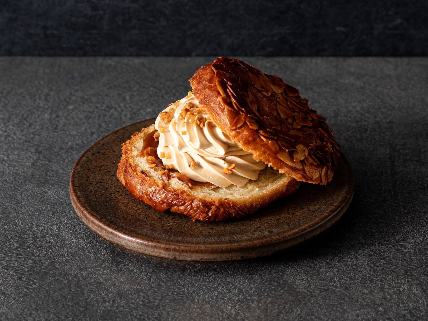 クイニーアマンに、アーモンドをたっぷりつけて焼き上げ、フロランタン風に。ザクっと食感が楽しい生地に濃厚なキャラメルクリームをサンド。どこを食べてもキャラメルを感じられる、マニア垂涎の一品。 ※数量限定:1日30個 ※提供時間:10:30~