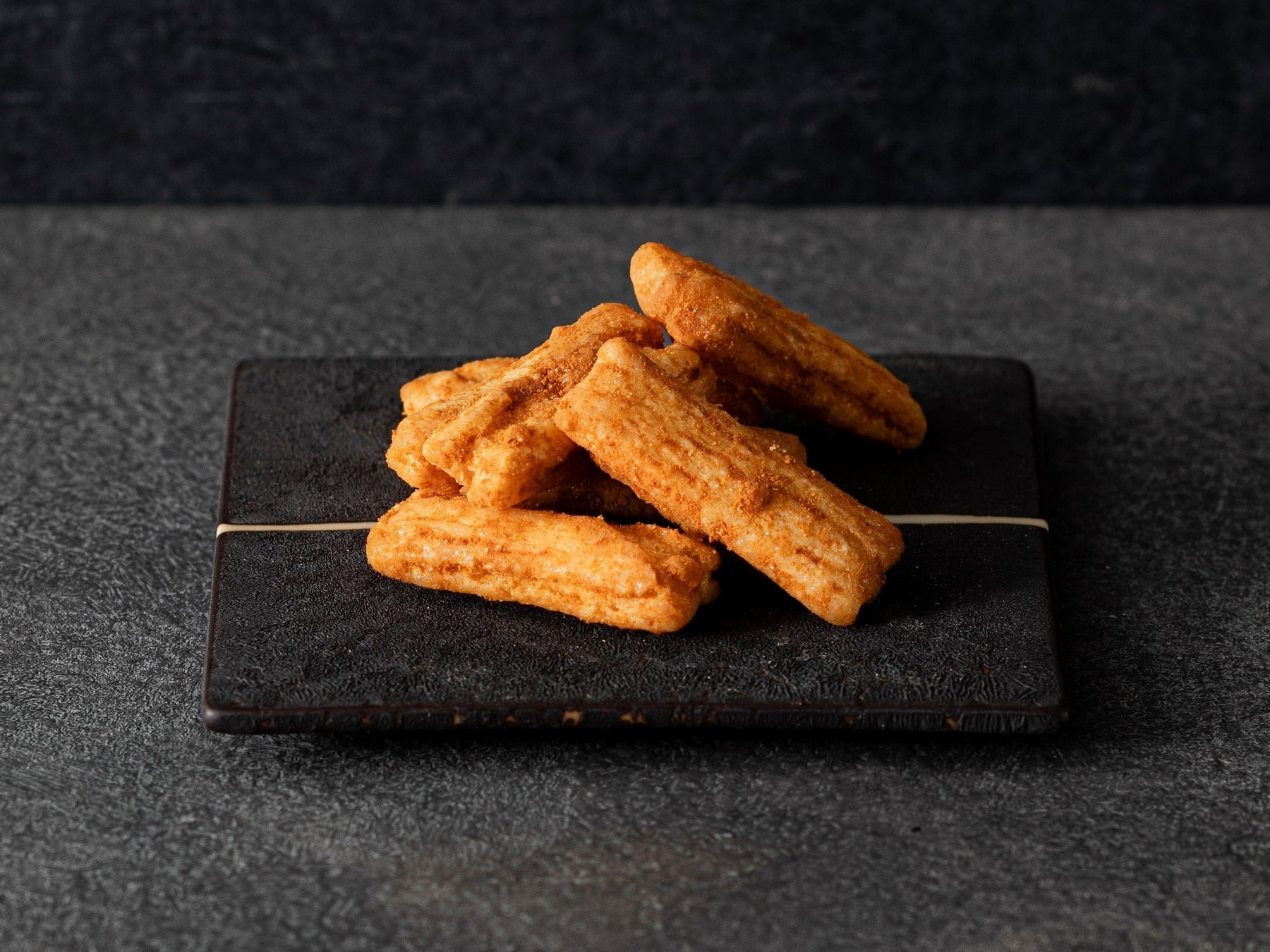 素材にこだわったおかきに、キャラメルソースをコーティング。おかきは長野県産の減農薬栽培もち米を使い、米油でさっくりと揚げることで、お米の甘さを引き出しています。キャラメルは甘さとほろ苦さが絶妙で、コーヒーとの相性も抜群です。