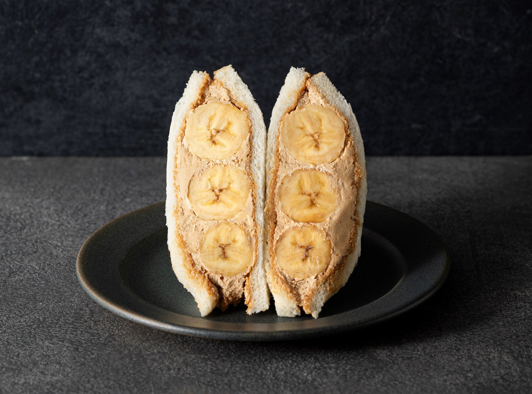 焦がしキャラメル風の生クリーム×ごろっとバナナのボリュームサンドイッチ!挟んでいるのは、なんと1本分のバナナ。添えられた焦がしキャラメル風生クリームはほろ苦で、甘さたっぷりのバナナと相性抜群です。店内厨房で製造しているので、作り立てのフレッシュなおいしさもお楽しみいただけます。