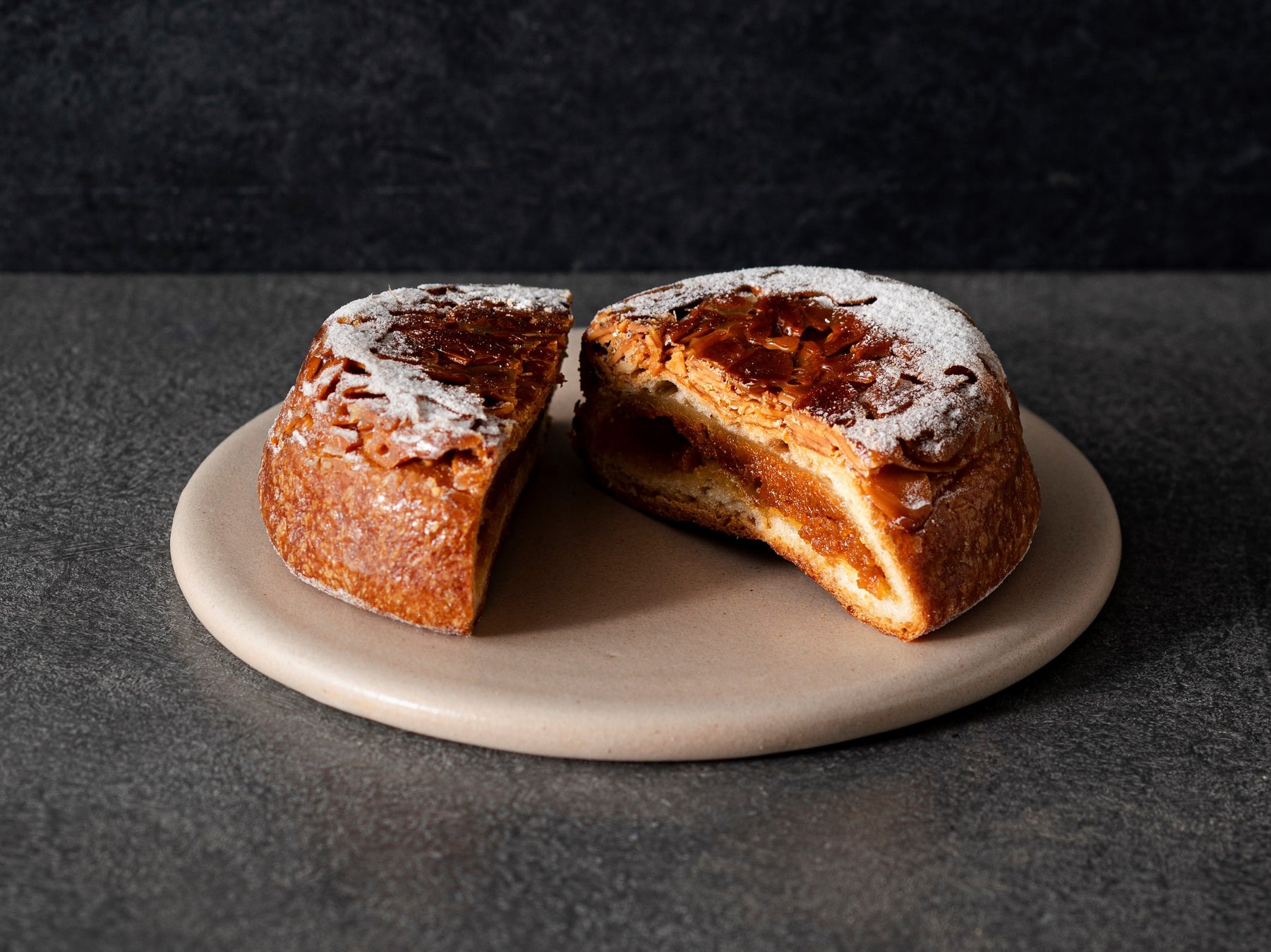 自家製キャラメルフランジパーヌ(カスタードクリームとアーモンドクリームを混ぜ合わせたクリーム)を包んだ生地にキャラメルアーモンドをたっぷりのせ、フロランタン仕立てに焼き上げました。食べ応え満点で、ご褒美おやつにも最適。※数量限定:1日30個