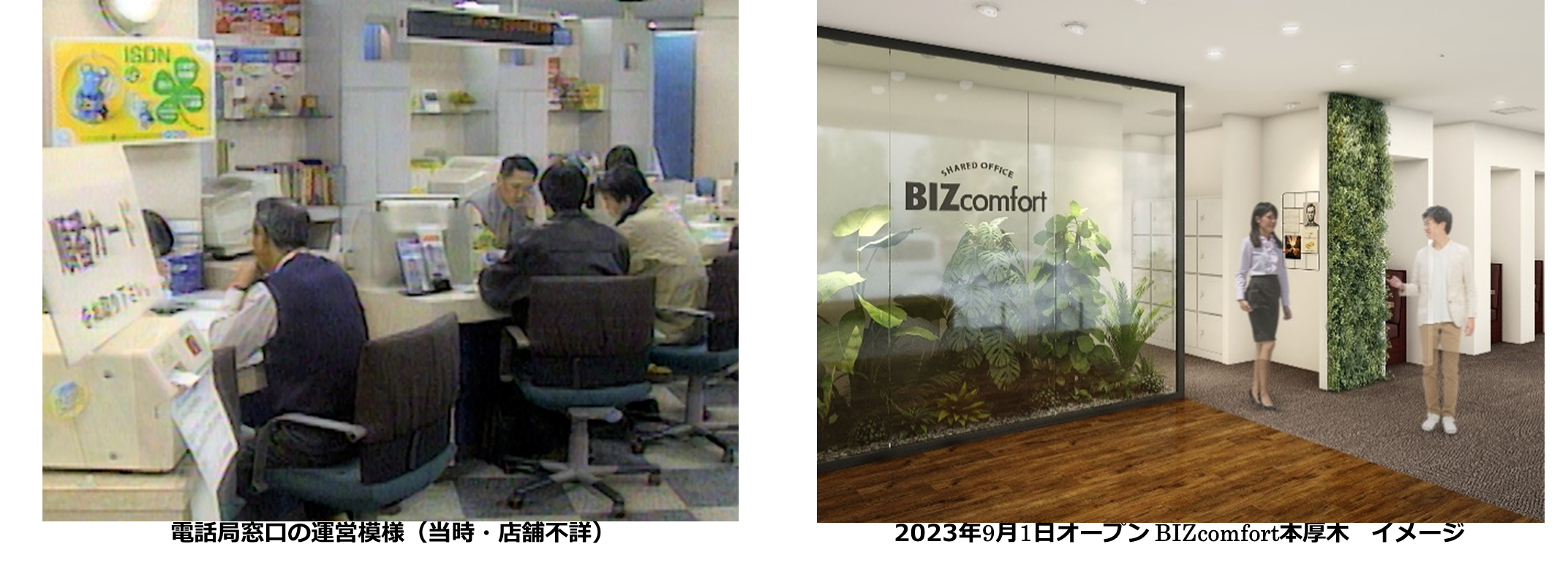 NTTグループ所有ビルのコンバージョン企画第二弾 元電話局窓口が職住近接シェアオフィスに生まれ変わる!BIZcomfort本厚木 2023年9月1日(金)オープン