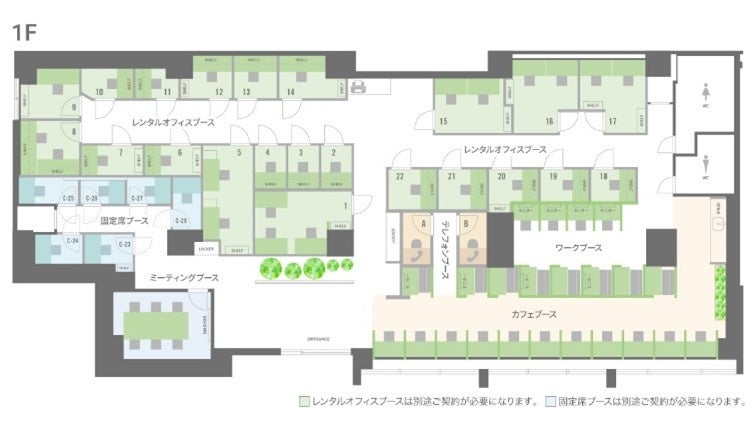 席数 :【コワーキングスペース】23席/【固定席】6席/【レンタルオフィス】22戸