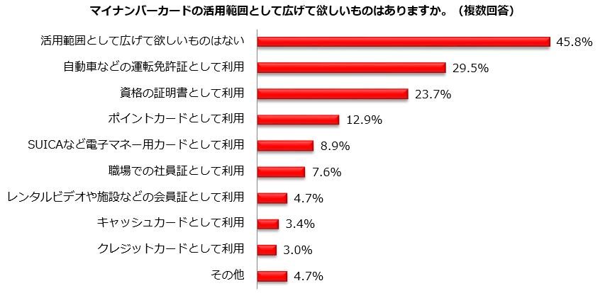 5.マイナンバーカードの活用範囲として広げて欲しいもの「ない」45.8%
