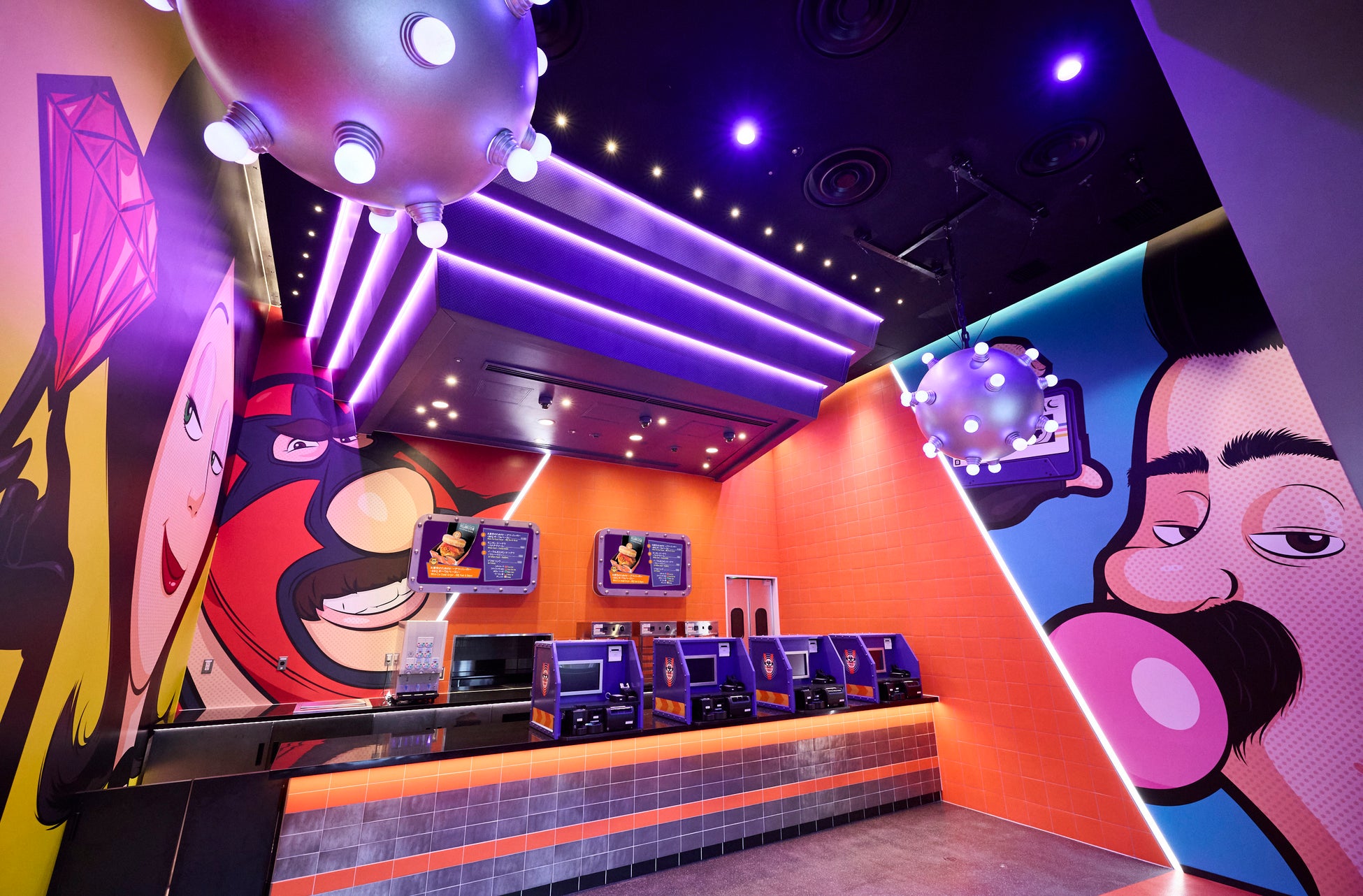 スナック・スタンド『イーブル・イーツ』では、「大悪党大会」のために集った世界中のワルたちに罪悪感に満ちたヤバいフードを提供します。食べれば誰もがヤミツキになる看板メニュー「大悪党のためのドーナツ・バーガー ~BBQ ポーク&ベーコン~」をはじめ、ミニオンが変身したドーナッツなど“ハチャメチャ”キュートな限定スイーツも登場します。悪党になりきって罪深い欲望を満たせる“やっちまった”フードをご賞味ください。