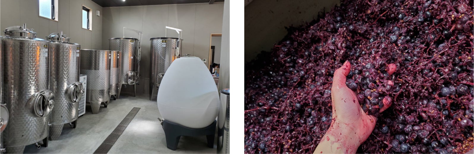 写真左)Natan葡萄酒醸造所のステンレスタンク