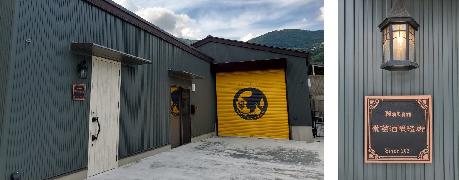 「Natan葡萄酒醸造」の「Natan(ナタン)」は、旧約聖書に登場する預言者"ナタン"からヒントを得て、"神からの贈り物"という意味から名付けられました。ワインは妖艶な香りを放ち、飲み手を酔わせ、つい本音を語らせるような"魔女の媚薬"であることから、ワイナリーのシンボルは、魔女のようなシルエットが象られています。また、代表・井下氏が生み出すワインは、日本食で育った日本人が、構えずに食と味わえる液体として「日本人の味蕾(みらい)が心地よい味わい」を目指していることから、ワイナリー表記ではなく、あえて「葡萄酒醸造所」と名付けられています。