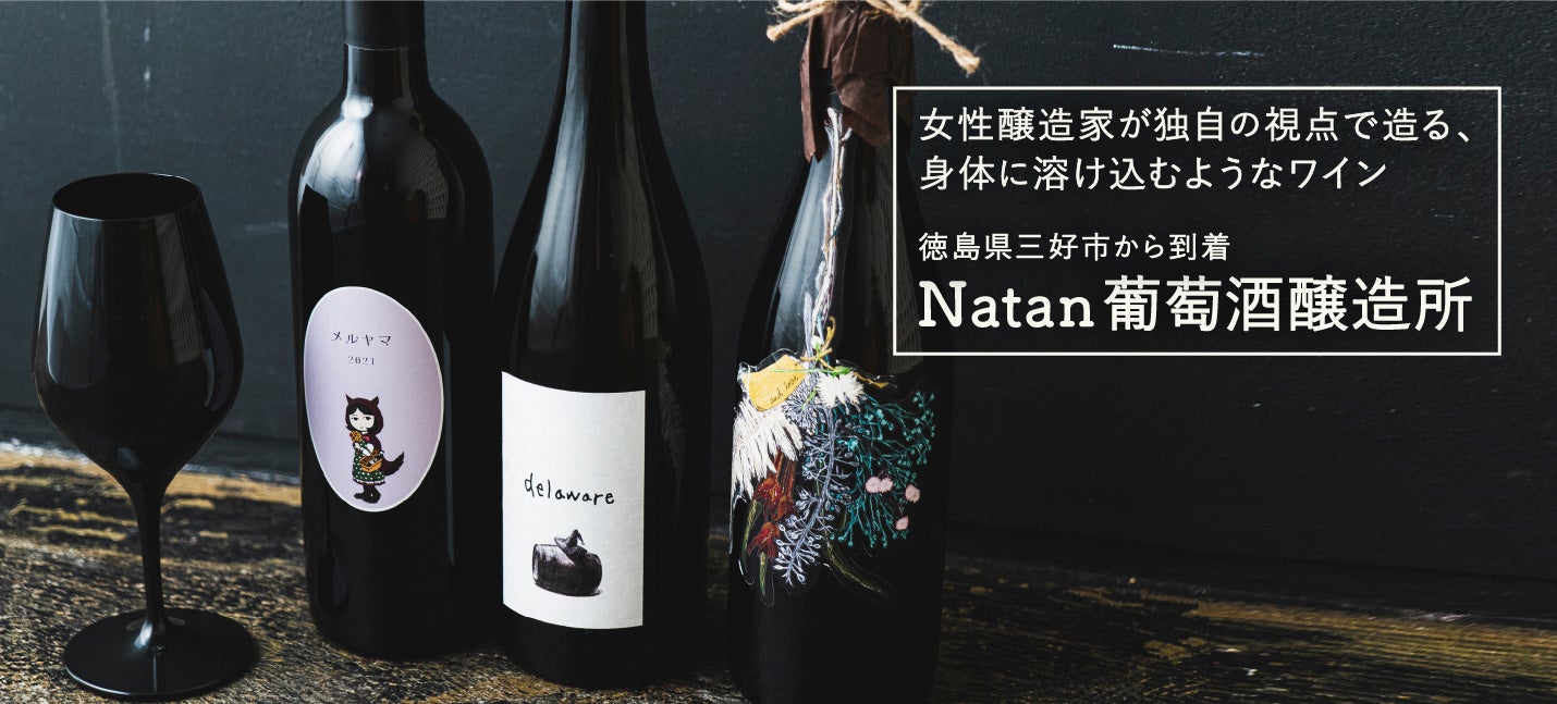 徳島県三好市に位置する「Natan葡萄酒醸造所」は、ソムリエから栽培醸造家に転身した、井下奈未香(いのしたなみか)氏が、ブドウ栽培が皆無だった地でゼロから開墾、栽培を開始。2021年に徳島県初となるワイナリーとして設立されました。"栽培・醸造・お客様とのご縁に対し一貫して愛を添えて向き合います=「and love」"を理念に、ワイナリーの代表でもある井下奈未香氏が造り出す、"魔女の媚薬"のようなワインを日々発信しています。無添加、無清澄、無濾過で生み出される日本ワインをwa-syuが独自のコンテンツとともにお届けします。