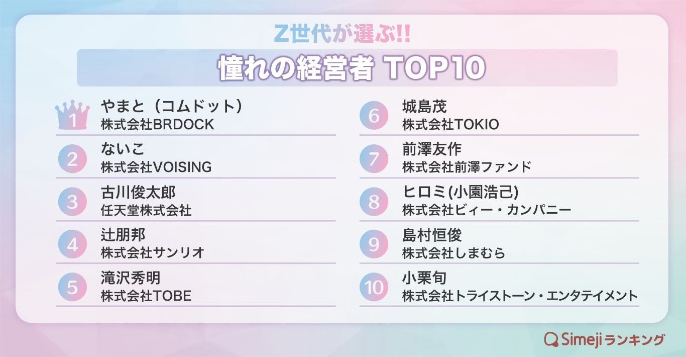 【Simejiランキング】Z世代が選ぶ!!「憧れの経営者TOP10」