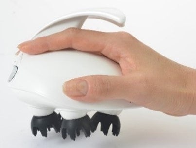 『Refrest』は、持ちやすさを追求したこだわりのデザインで、指の股で挟むように持つ構造を採用しました。薄型設計なので、手にフィットしやすく、女性でも扱いやすくご使用いただけます。長時間の使用でも疲れにくいのが特長です。もみ玉の角度は頭皮にフィットするようアーチ形状にこだわりました。
