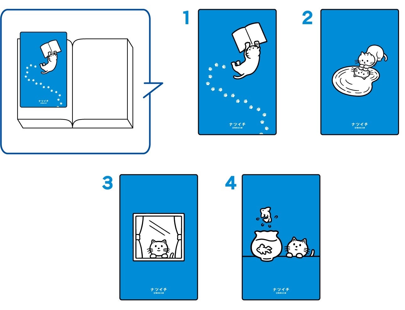 フェア参加書店の店頭で「ナツイチ」対象作品を1冊買うと、「ナツイチ2025限定 よまにゃクリアしおり」(全4種)をその場で1枚プレゼントします。ミニ下敷きとしても使える、とっても可愛いしおりです。
