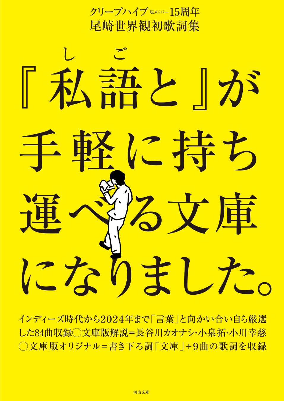 今年「現メンバー15周年」を迎える「クリープハイプ」のヴォーカル・ギター尾崎世界観の初歌詞集『私語と(しごと)』が、河出文庫より2024年10月8日(火)に刊行。