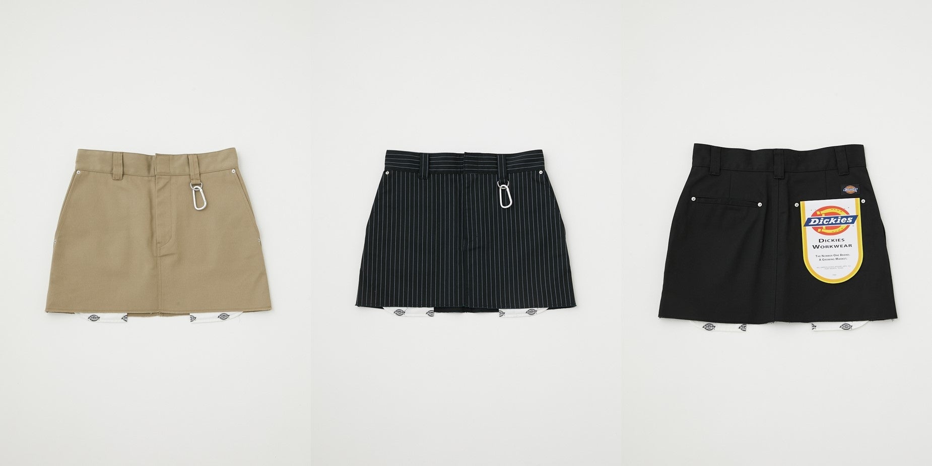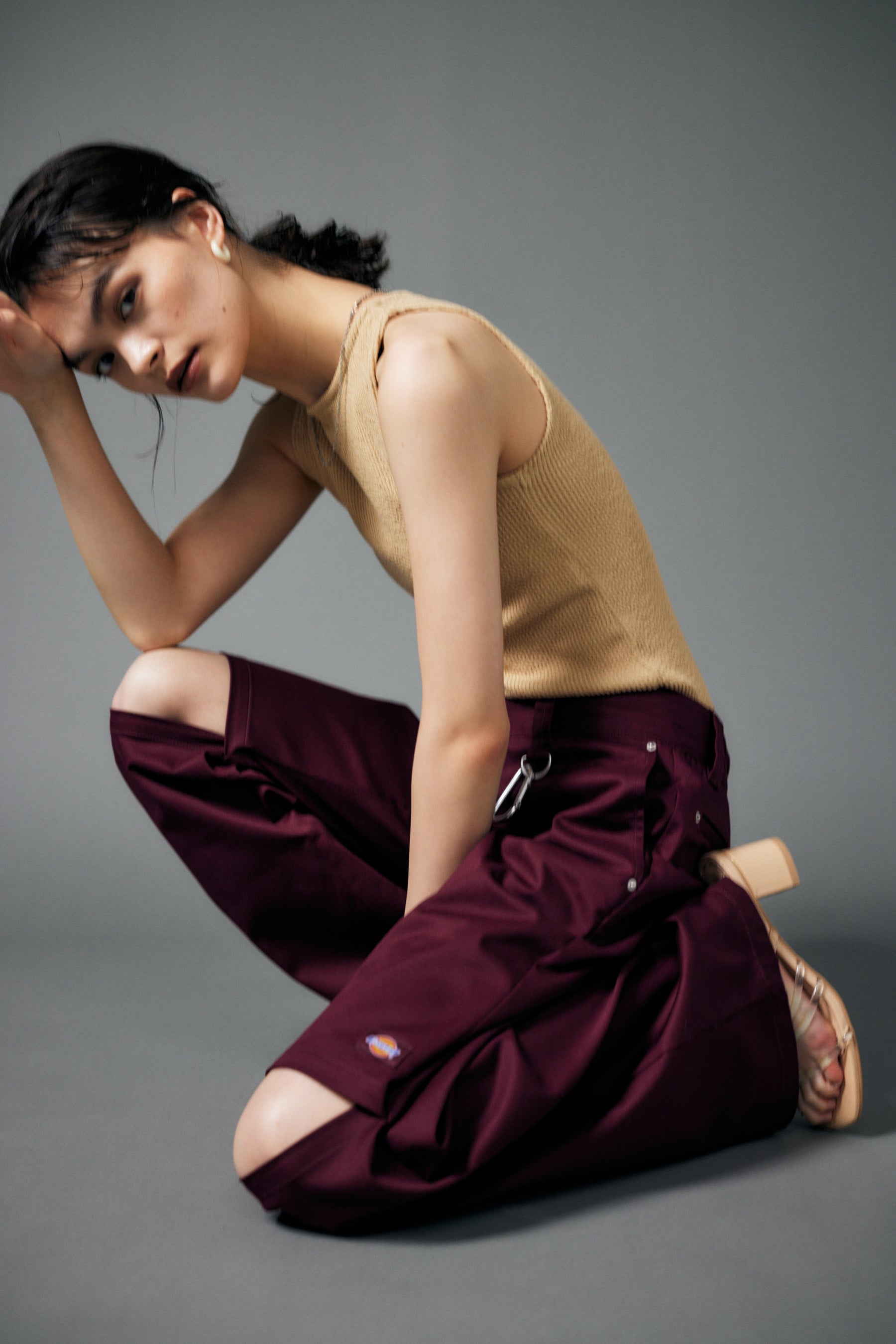ワークウェアブランドの代名詞「Dickies®」とのリミテッドエディションが実現しました。Dickies®の大定番であるワークパンツをベースに、ニースリットやカラビナを加えストリートスタイルにアレンジしたパンツ、リメイク風のミニスカート、古着から着想を得たプリントTなど、MOUSSYのブランドカルチャーをオリジナルディティールとして落とし込んだ、リミテッドエディションならではのスペシャルな3型をラインナップいたします。