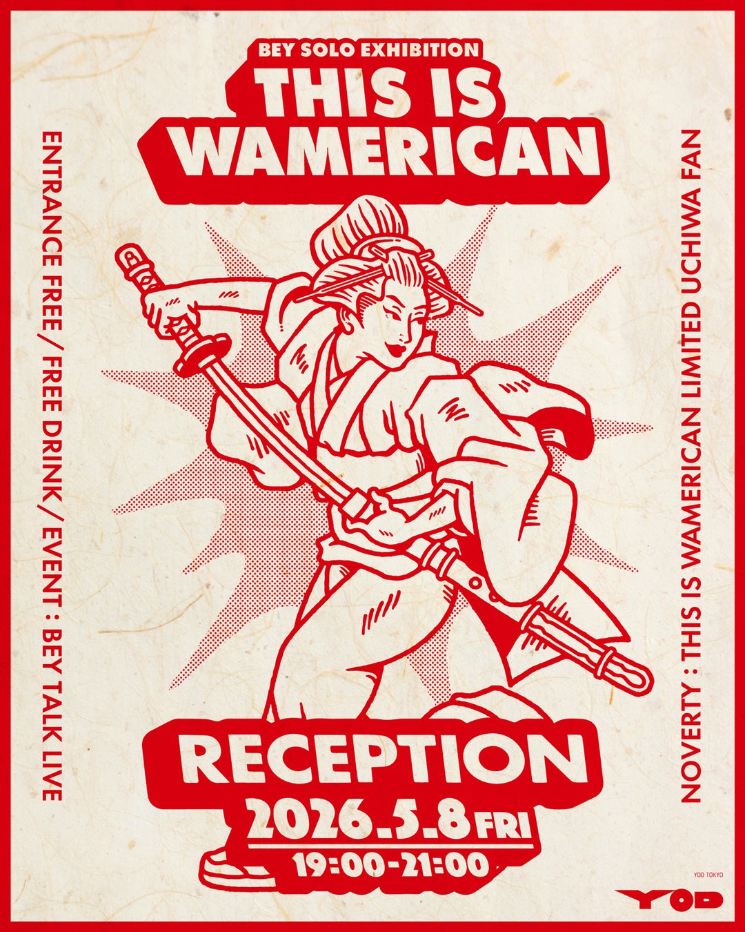 福岡を拠点に活動するイラストレーター・BEYの個展「THIS IS WAMERICAN」が、2026年5月8日(金)から5月20日(水)まで、東京・原宿のYOD TOKYOにて開催されます。