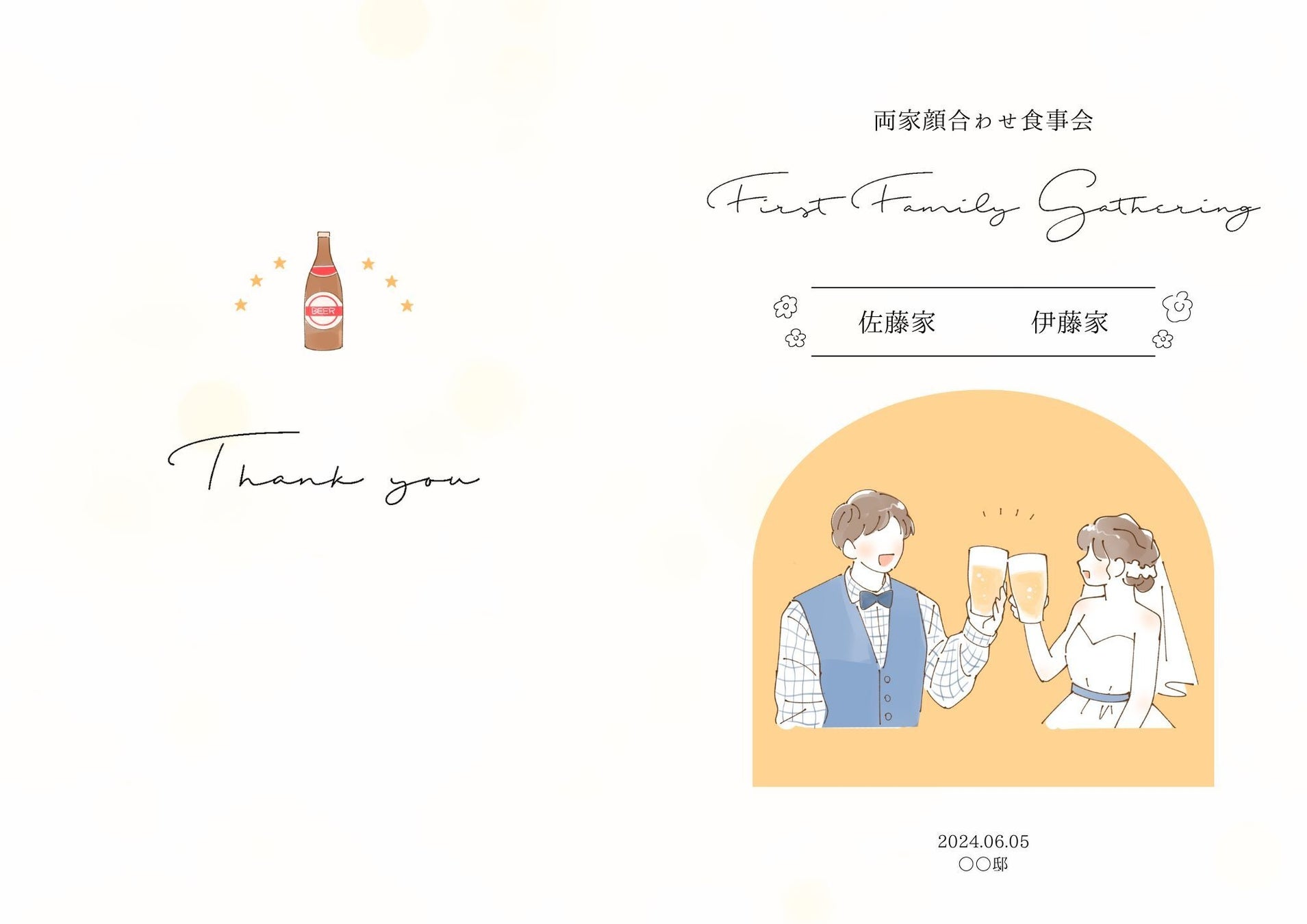 なかよく乾杯するカップルがかわいいらしいデザイン。ビールはもちろんのこと、お酒・飲み会好きのおふたり、ご家族にぴったりのデザイン。