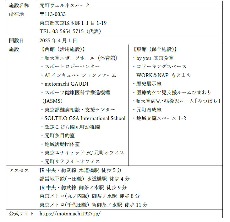 2025年4月1日、順天堂大学と文京区の協働プロジェクトとして、元町ウェルネスパークがオープンします。多世代の健康を支える複合施設として、公共と民間が協働で運営し、「100年後の未来の子どもたちにつながる地域の拠点づくり」をテーマに幅広い事業を行います。