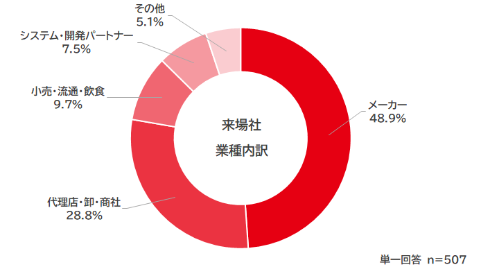 「メーカー」 が最も多く、来場社全体の48.9%を占める