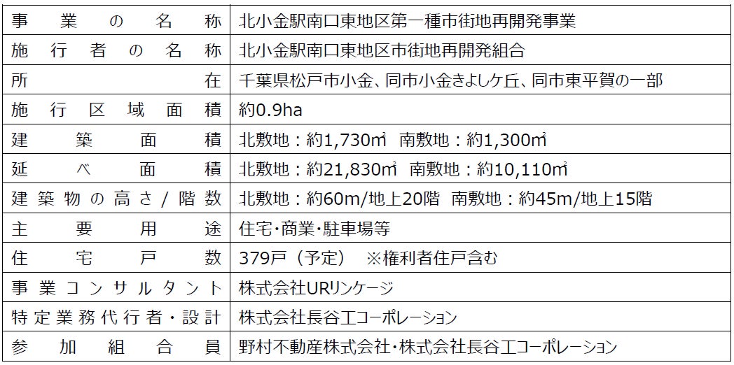 北小金駅南口東地区市街地再開発組合(理事長:鈴木 悦朗 以下、本組合)と本組合に参加組合員として参画している野村不動産株式会社(本社:東京都新宿区/代表取締役社長:松尾 大作)、株式会社長谷工コーポレーション(本社:東京都港区/代表取締役社長:熊野 聡)は、千葉県松戸市にて進めております「北小金駅南口東地区第一種市街地再開発事業(以下、本事業)」において、2025年2月13日に権利変換計画について千葉県知事の認可を受けたことをお知らせいたします。