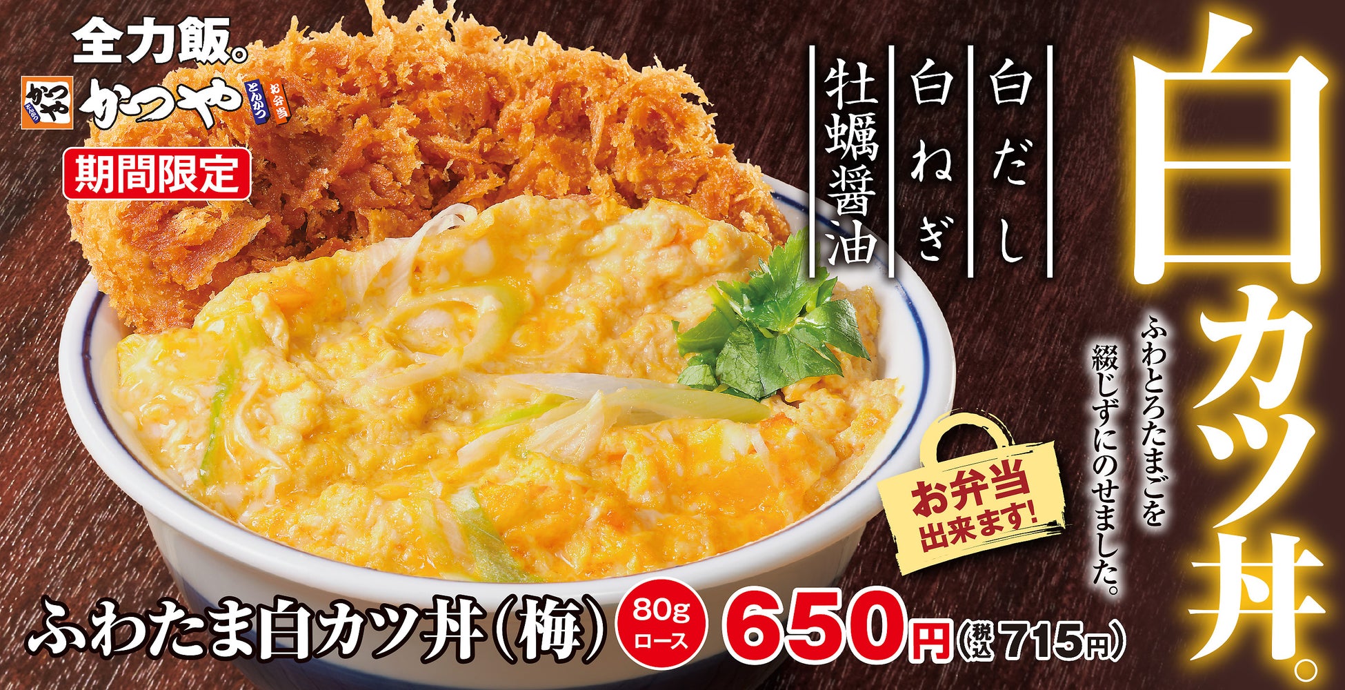アークランドサービスホールディングス株式会社の⼦会社、とんかつ専⾨店「かつや」を展開している株式会社かつや(本社:東京都千代⽥区/代表:⼤内 勇⼀)は、国内「かつや」にて、期間限定メニュー「ふわたま白カツ丼」を2023年1月13日(金)より期間限定で販売いたします。