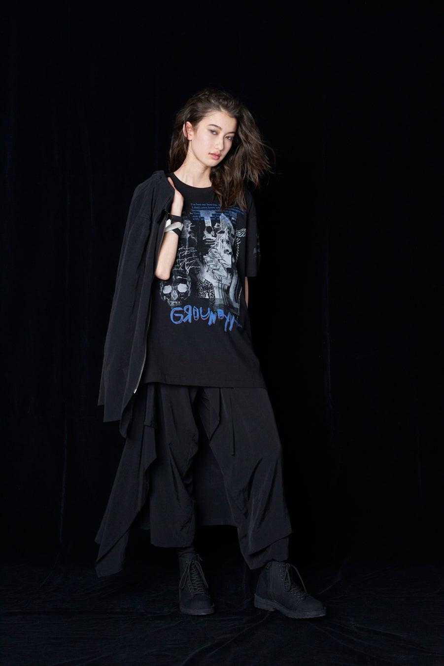 本コレクションでは、トランプ、リカオン、スカル、ペイント柄など、シンボリックなモチーフを組み合わせたGround YオリジナルグラフィックTシャツ全7型が登場します。コラージュやインクジェットプリントなどの多様な表現技法を駆使し、Ground Yならではのエッジの効いたビジュアルに仕上げました。ブランドの象徴的なモチーフを取り入れながら、ファッションの自由な可能性を広げます。素材には、柔らかな肌触りのコットンを使用。ユニセックスで絶妙なシルエットは、一枚で存在感を放つだけでなく、ジャケットのインナーとしても洗練されたスタイルを演出します。それぞれのデザインに込められたアート性と、Ground Yが持つ独自の世界観をぜひお楽しみください。
