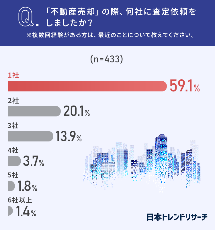 不動産売却をした理由としては、買い替えや相続した不要な土地などさまざまなものがありましたが、売却の際何社に査定依頼をする方が多いのでしょうか。