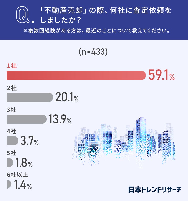 査定依頼数は「1社」と回答した方が59.1%と、もっとも多い結果になしました。