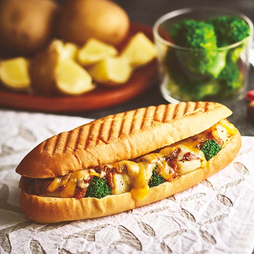 国産玉ねぎの甘さが際立つ濃厚な味わいが特長の特製ビーフシチューに、食べごたえがあるごろっとカットのブロッコリーとじゃがいもを加え、とろけるチーズを合わせて、歯切れのいいオリジナルフランスパンでサンドしました。