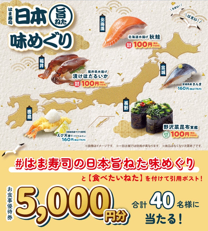 ぜひこの機会に、お近くのはま寿司で「はま寿司 日本旨ねた味めぐり」をお楽しみください。