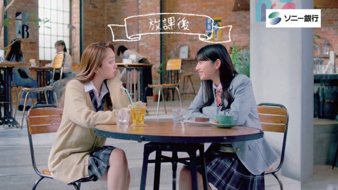 アルバイトの面接に受かり、憧れの先輩(のせりんさん)と同じバイト先という嬉しさから妄想を繰り広げる女子高生役の向井怜衣さんに対して、親友役のみりちゃむさんが冷静に突っ込み、アルバイト準備としての口座開設は終わったのか、まだならソニー銀行がオススメと伝える内容になっています。