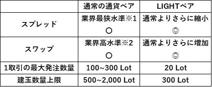 ■『LIGHTペア』と通常の通貨ペア比較
