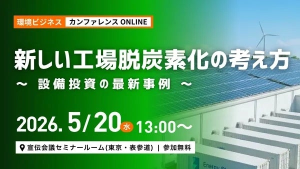 株式会社宣伝会議(本社:東京都港区/代表取締役社長:高橋 智哉)は、2026年5月20日(水)、申し込み無料のカンファレンス『環境ビジネスカンファレンス 新しい工場脱炭素化の考え方~設備投資の最新事例~』を開催します。リアルとオンラインのハイブリッド形式です。