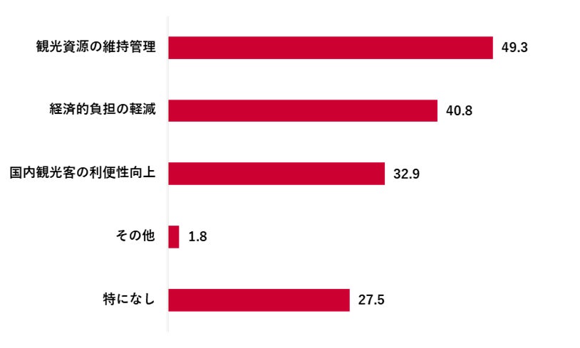 一方、二重価格のメリットについては、「観光資源の維持管理」(49.3%)がトップだった。