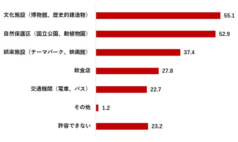 ~ 許容できる場所は文化施設・自然保護区が半数以上、飲食店・交通機関が3割未満 ~