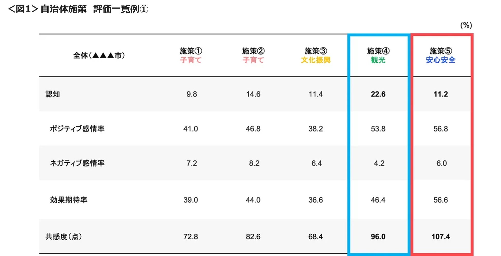 株式会社クロス・マーケティング(本社:東京都新宿区 代表取締役社長兼CEO:五十嵐 幹、以下当社)は、自治体が実施する各種施策に対し、市民が抱く「認知度」「ポジネガ感情(印象)」「効果期待度」を可視化する「自治体施策 共感度把握調査」の提供を開始しました。この「自治体施策 共感度把握調査」は、EBPM(エビデンス・ベースト・ポリシー・メイキング)に役立つサービスとなっています。