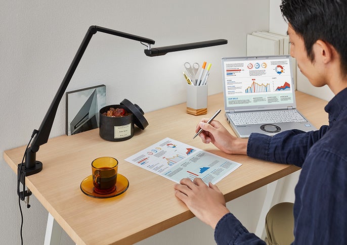 パナソニックでは、デスクまわりを明るく照らし在宅ワークや勉強環境を快適にサポートするLEDデスクスタンドやLEDシーリングライトを展開しています。