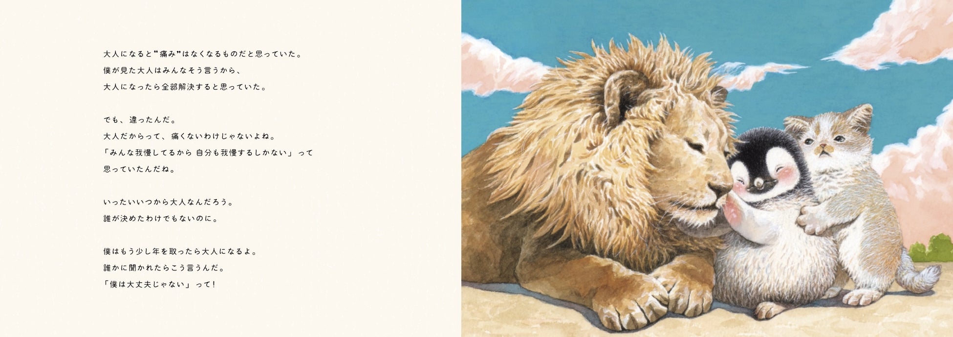 あなたにそっと寄り添うやさしいメッセージと癒しのイラストに思わず涙する大人向け絵本。