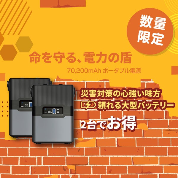 大容量ポータブル電源(70200mAh) 最大300W出力。キャンプや災害時の備えに。
