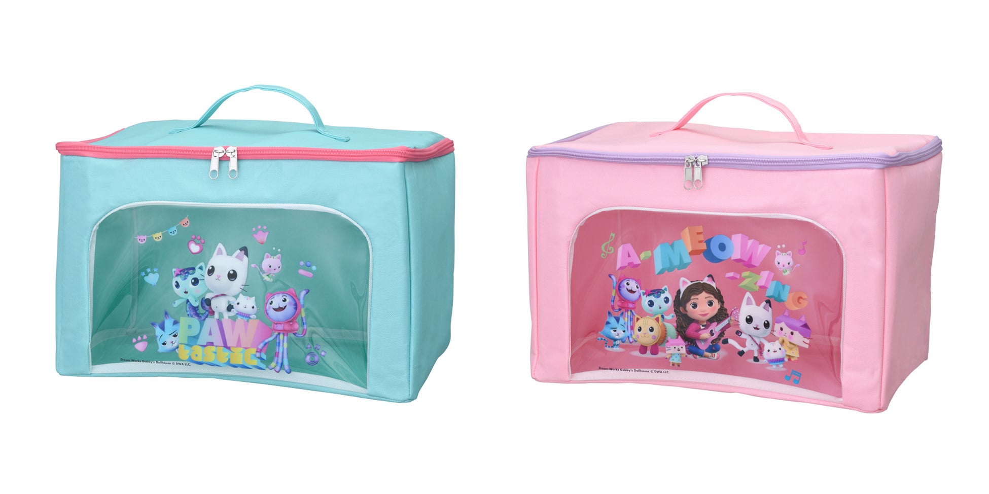 ギャビーとドールハウスのなかまたちが大集合した透明な窓付きの収納ボックス。
